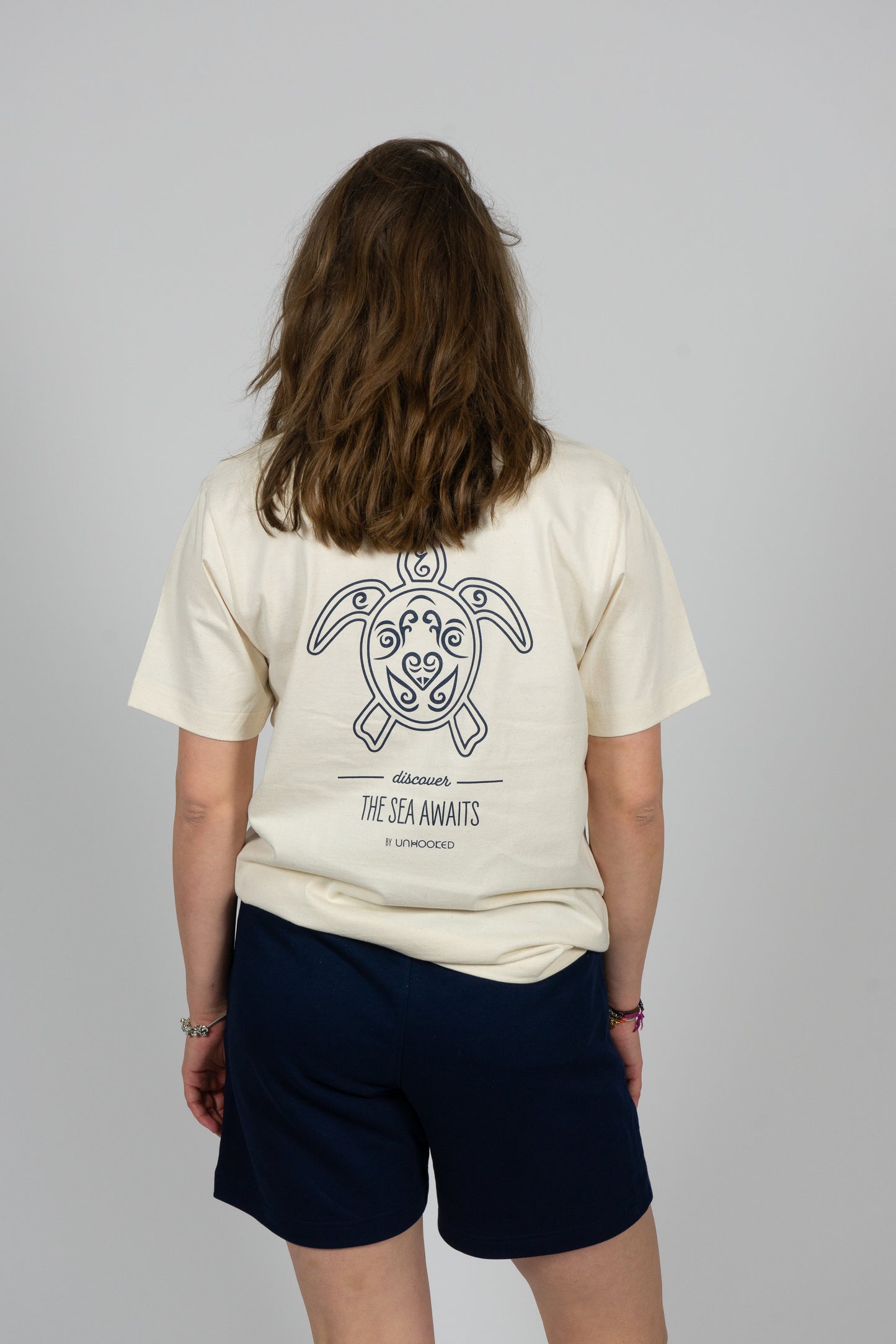 Regular price €19,95Made for slow mornings, salty air, and following your own current. The Sea Awaits T-shirt is part of our The Sea Awaits collection and is crafted from 100% organic cotton with a slightly rough texture that feels honest and lived-in.